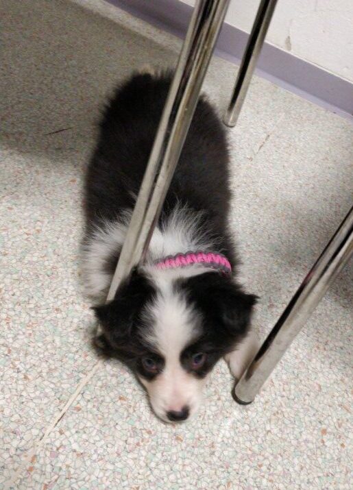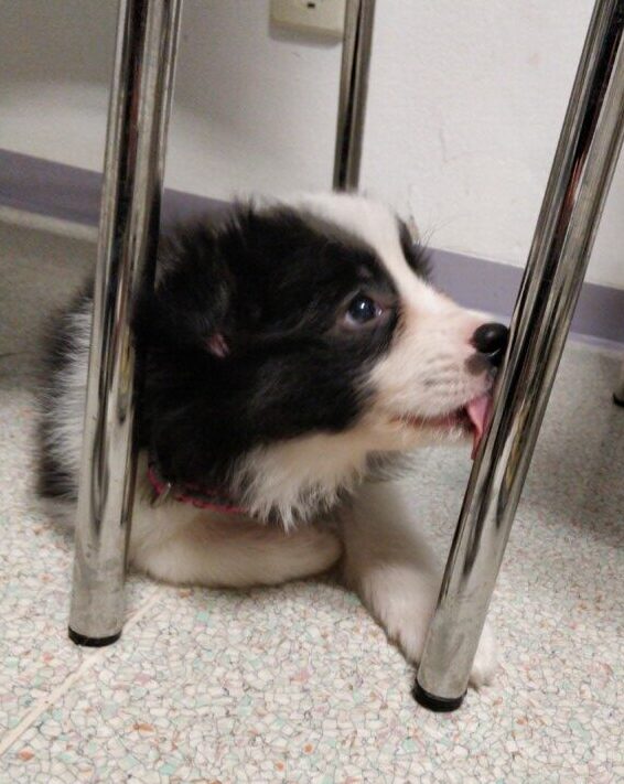 Heute geht es wieder zum Tierarzt: letzte Woche erst war ich beim Chippen, heute steht die Augenuntersuchung (Routine) an und in ein paar Tagen werde ich das erste Mal geimpft. Heute begleitet uns Jette und ist die Aufsichtsperson im Wartezimmer. Sie hat alle Hände voll zu tun – wir haben Flausen im Kopf. Ich bin z. B. immer ins Bücherregal geklettert und habe versucht, die hochgelegten Zeitungen runter zu ziehen. Ich habe festgestellt: Stuhlbeine schmecken nicht! Meine eine Schwester fand die Steckdose spannend und mein Bruder hat die ganze Zeit versucht, aus dem Wartezimmer zu flüchten. Ich habe zwischendrin auf Jettes Schoß gechillt und ihre Streicheleinheiten genossen.